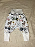 Die Pumphose sitzt locker und durch das elastische Bündchen sitzt es bequem. Durch das Bündchen ist die Hose mitwachsend. Sie wächst über zwei Größen mit.